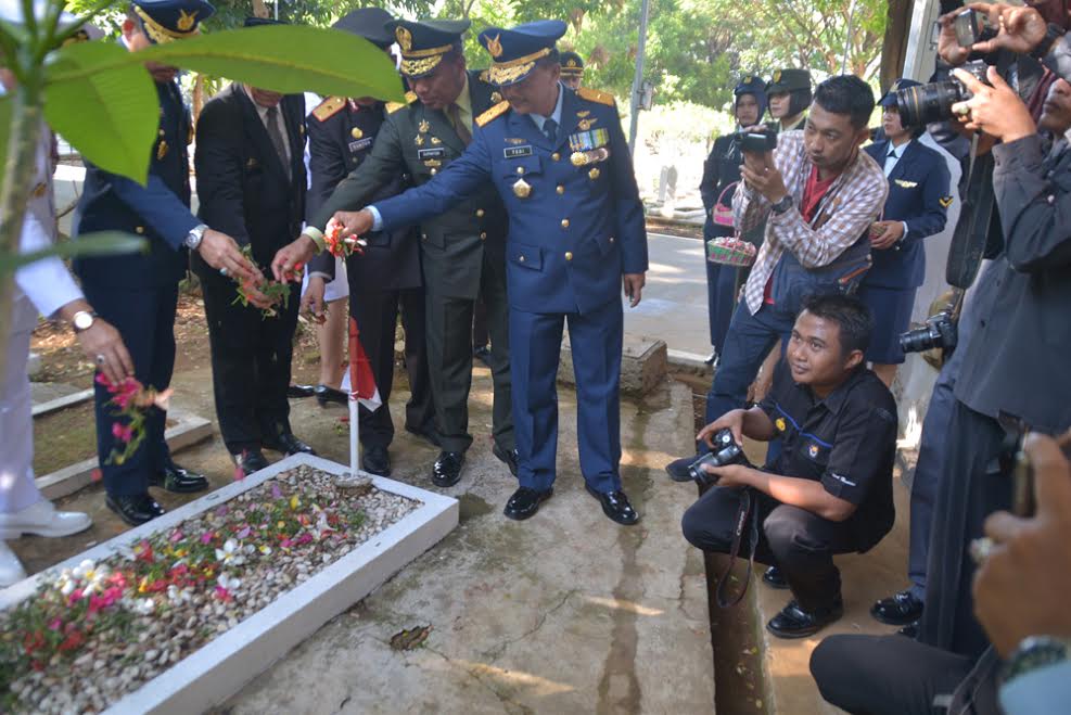 Pangkosekhanudnas II Marsekal Pertama TNI Ir Tedi Rizalihadi S dan Para pejabat Kosekhanudnas II juga turut hadir melakukan tabur bunga.