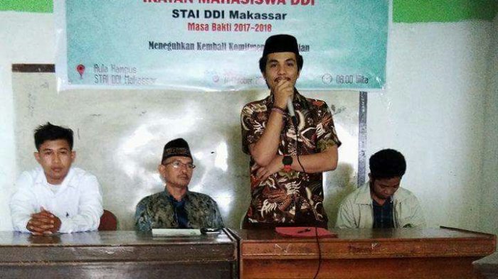 TRIBUN-TIMUR.COM, MAKASSAR - Ikatan Mahasiswa Darud Da'wah Wal-Irsyad (IMDI) Komisariat Sekolah Tinggi Agama Islam (STAI) DDI dikantik di Aula Kampus STAI DDI Makassar, Jl Sultan Alauddin, Makassar, Selasa (17/10/2017). Pelantikan dirangkaikan rapat kerja dengan tema meneguhkan kembali komitmen pengabdian.