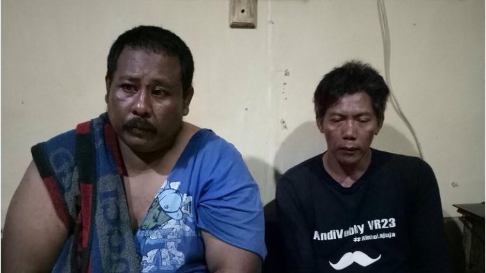 TRIBUNPINRANG.COM, TIROANG - Agus Salim (40) dan Amiruddin (46) hanya tertunduk lesu saat berada di ruang pemeriksaan Satres Narkoba Polres Pinrang, Jl Jenderal Sudirman, Kecamatan Watang Sawitto, Senin (23/10/2017).
