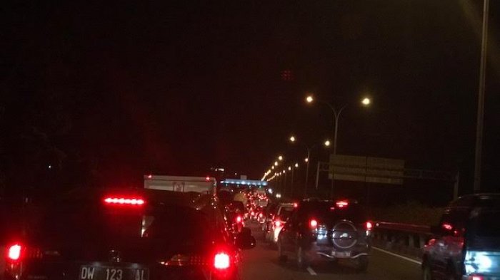 Jalur kemacetan terjadi di 3 dari 4?gerbang tol. Kendaraan melaju 0,1 km/ jam. Lambat dan membosankan.