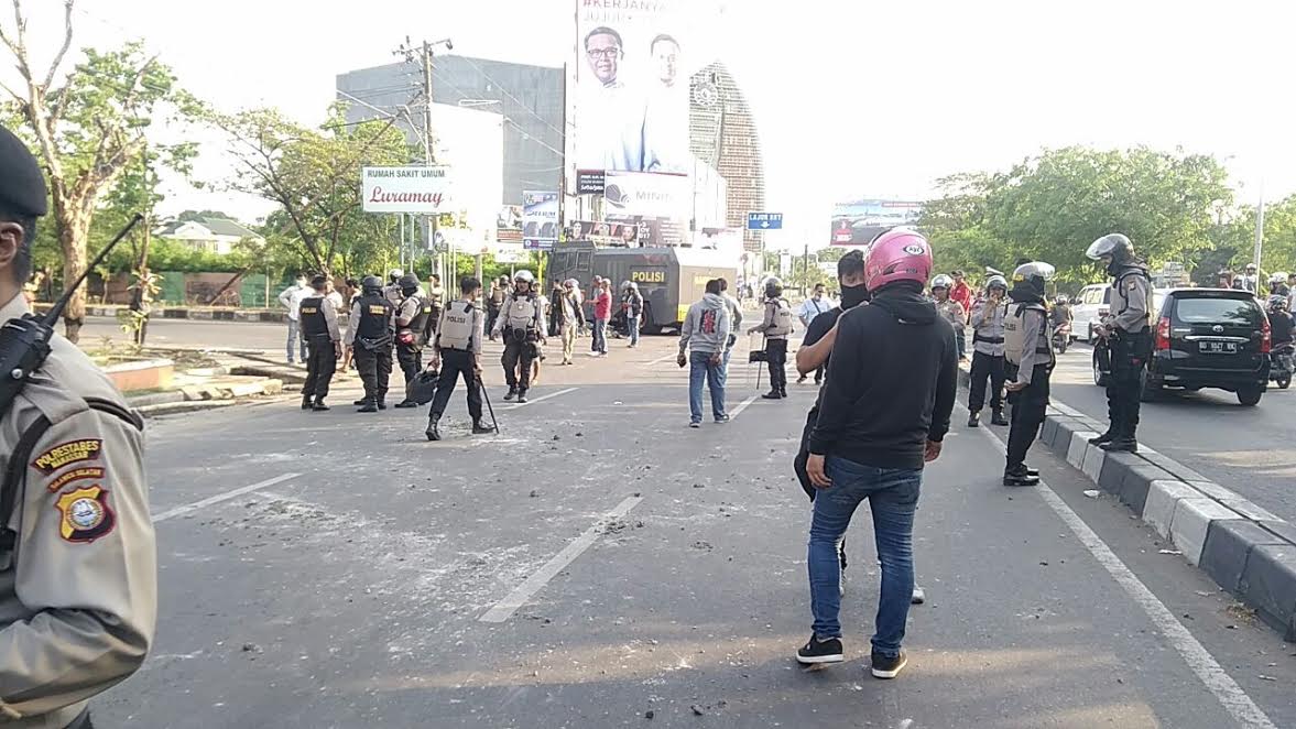 Saat aksi lempar batu dari arah mahasiswa tersebut, polisi mengerahkan pasukan Sat Sabhara Polrestabes, tim Patmor, Brimob, Sat Reskrim, dan Intel polisi.