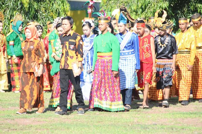 Mereka menggunakan pakaian adat saat upacara peringatan hari sumpah pemuda di halaman Kantor Bupati Soppeng
