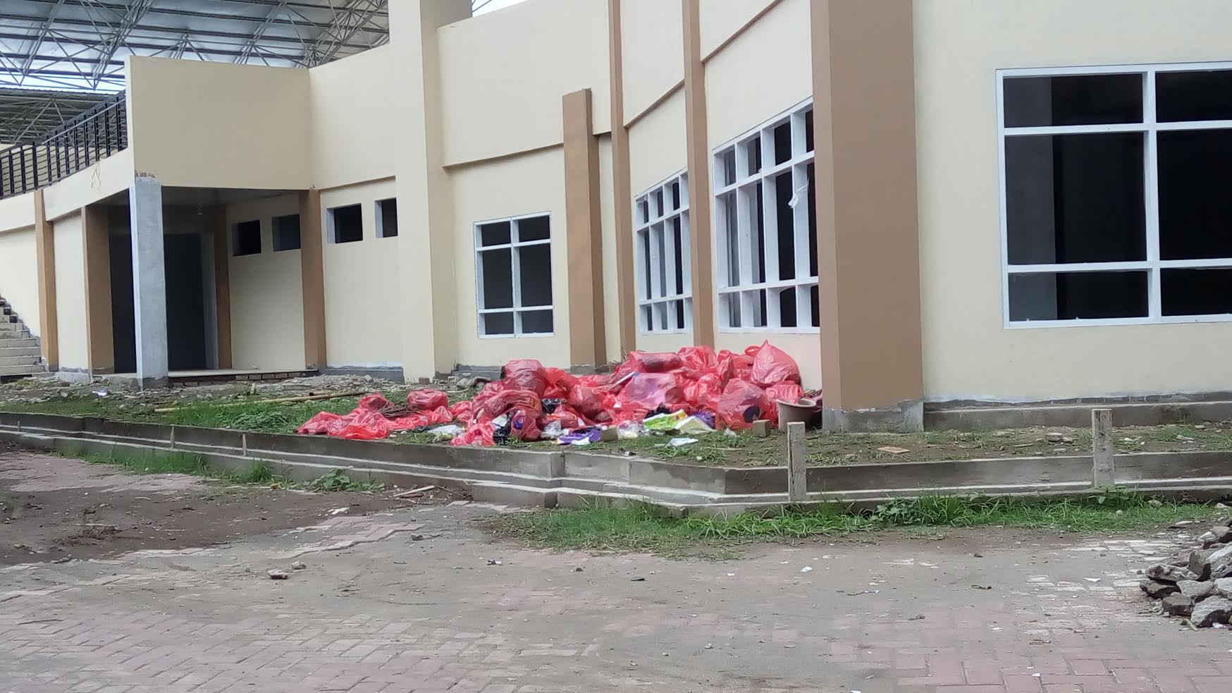 Kantong sampah bekas makanan dan minuman itu adalah sisa kegiatan jalan sehat KNPI Takalar dalam rangka Hari Sumpah Pemuda, Minggu (29/10/2017) kemarin.