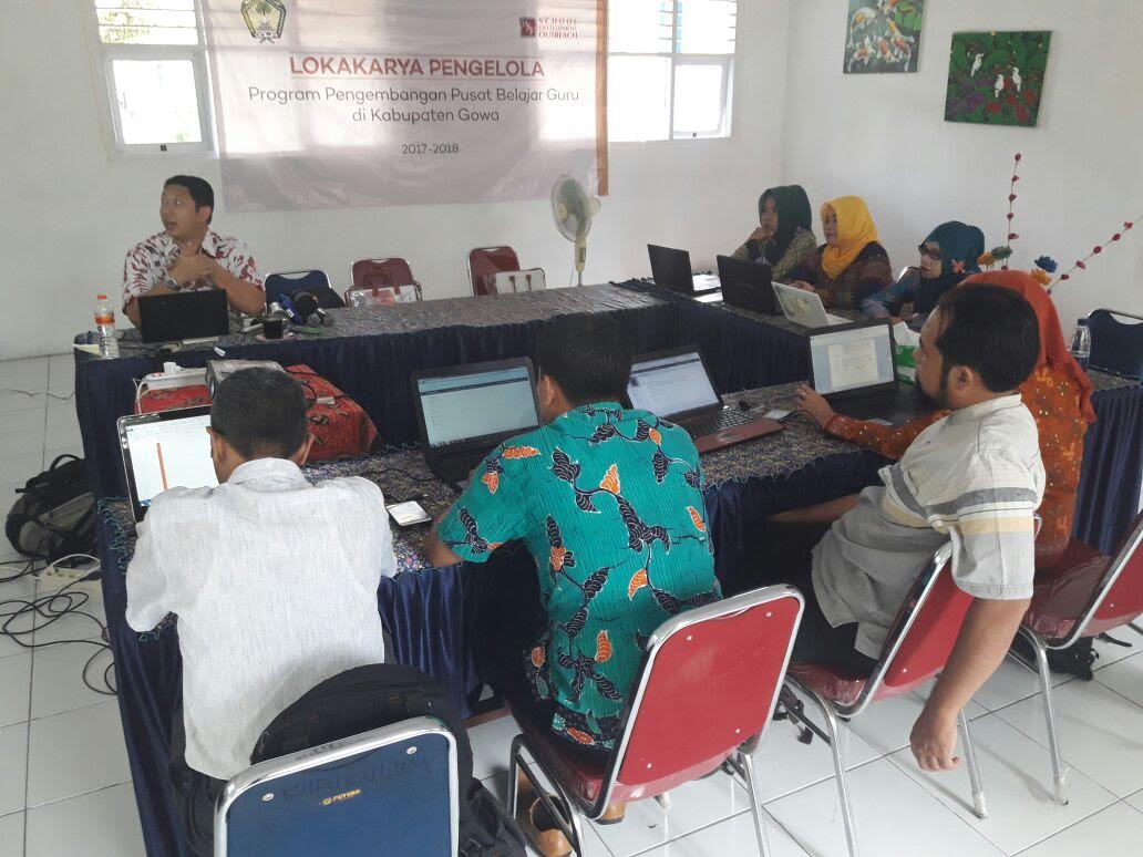 TRIBUN-TIMUR.COM, SUNGGUMINASA- Sebanyak 10 dari 42 guru inti dari Program Pengembangan Pusat Belajar Guru (PBG) Kabupaten Gowa mengikuti Workshop Lokakarya Pengelola di SMPN 3 Sungguminasa, Jl. Mustafa Daeng Bunga, Romangpolong, Kecamatan Somba Opu, Rabu (8/11/2017).