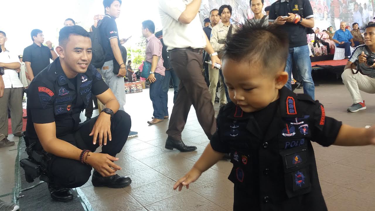 "Anaknya pak dansat brimob polda ini, namanya Arshaka," ujar Bripda Wardana yang terus menjaga gerak Kombes kecil.