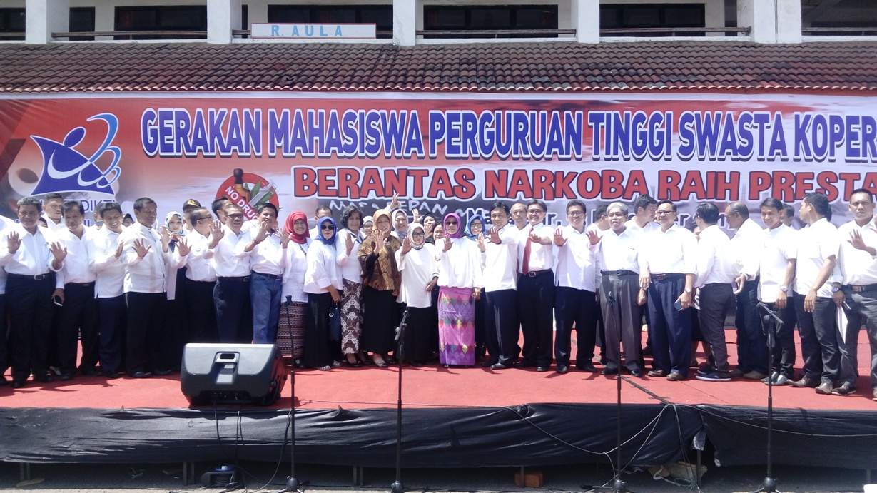 Deklarasi yang dihadiri perwakilan itu Kemenristek Dikti yakni Sekretaris Dirjen Pembelajaran dan Kemahasiswaan, Prof Dr Rina Indiastuti SE MSIE ini mengusung tema, Berantas Narkoba Meraih Prestasi.