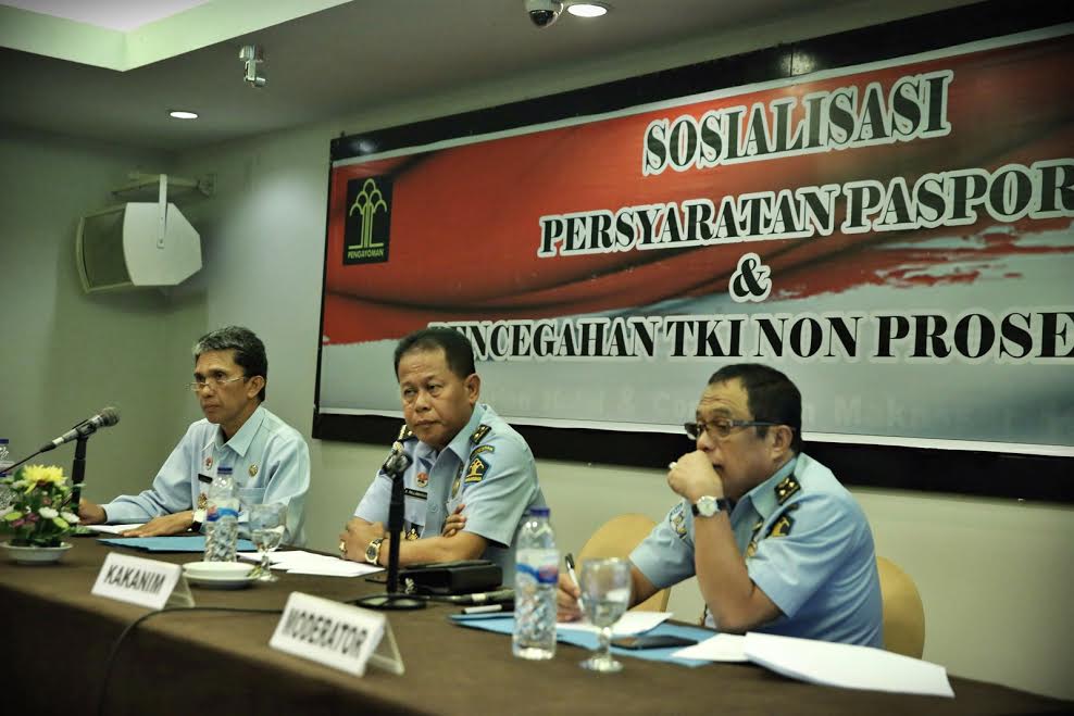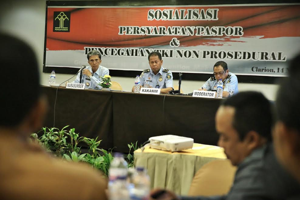 Kantor Imigrasi Kelas I Makassar menggelar Sosialisasi Persyaratan Paspor dan Pencegahan TKI Non Prosedural di Hotel Grand Clarion Makassar, Selasa (14/11/2017).
