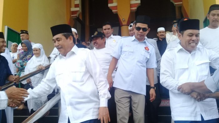 Di masjid tersebut, pasangan DOAMU disambut sejumlah simpatisannya. Setelah melaksanakan salat, pasangan DOAMU bersama sejumlah kader dan simpatisan Partai Demokrat dan Gerindra menuju lokasi deklarasi.