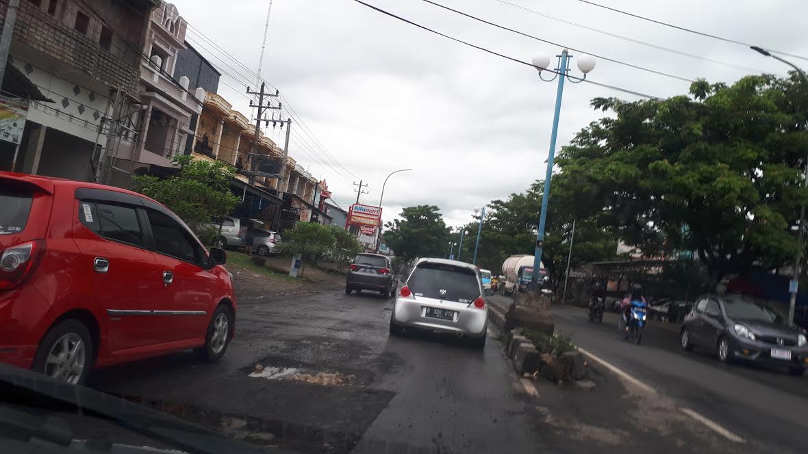 Sejumlah kendaraan yang melintas, harus berhati-hati saat melintas atau berada di lubang.