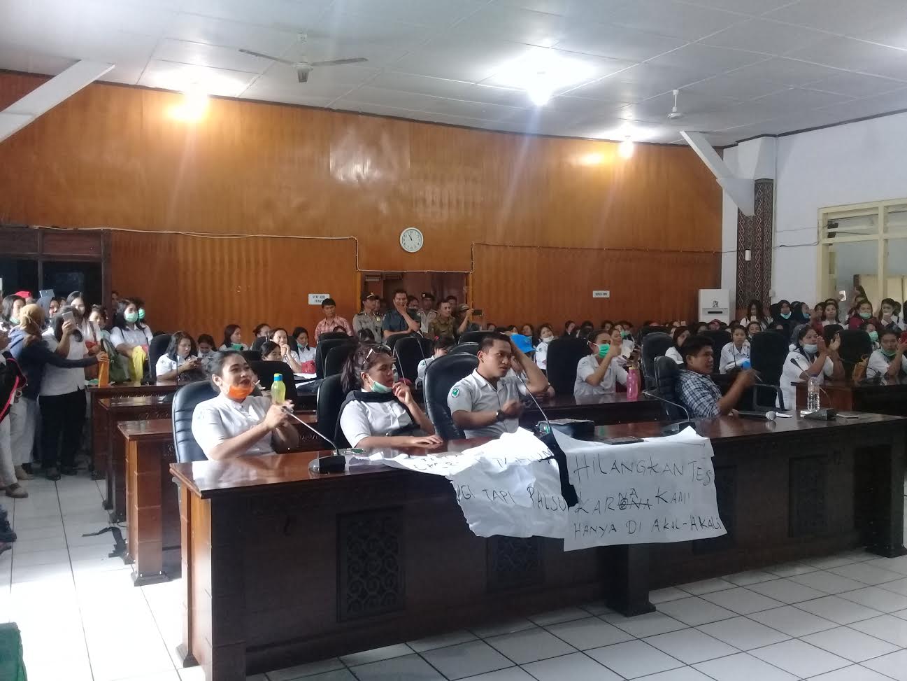 Aspirasi tenaga PHT Kesehatan menuntut gaji dibayarkan di tahun 2017, dan kebijakan Dinas Kesehatan yang akan melakukan tes uji kompetensi (Ukom) bagi Honorer yang sudah bekerja bertahun-tahun, serta dianggap tidak memperdulikan nasib mereka.