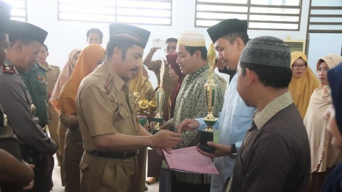 Selanjutnya penyerahan hadiah kepada para pemenang, lomba MTQ XXX Tahun 2018.