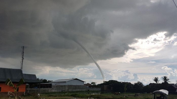 Hingga pukul 16.45 Wita, puting beliung tersebut masih terlihat.