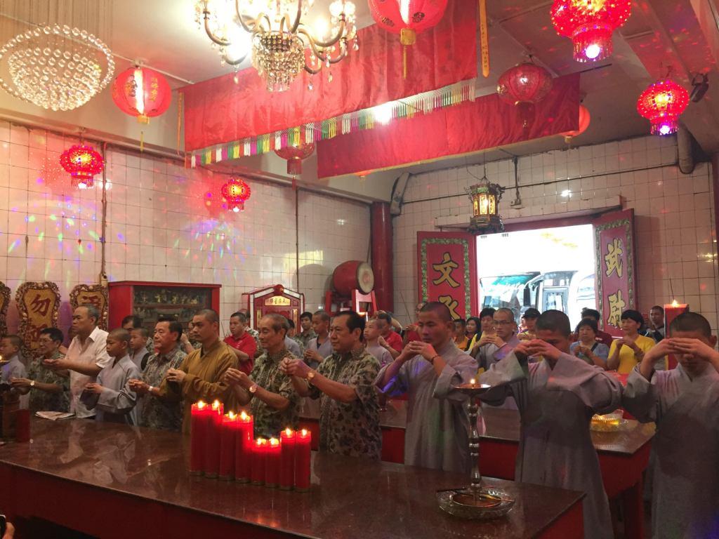 Tim Shaolin dari Cina Selatan berkunjung ke Klenteng Kwan Kong, Jumat (9/3/2018). Mereka pun disambut Ketua Harian Yayasan Klenteng Kwan Kong, Agung Gozal