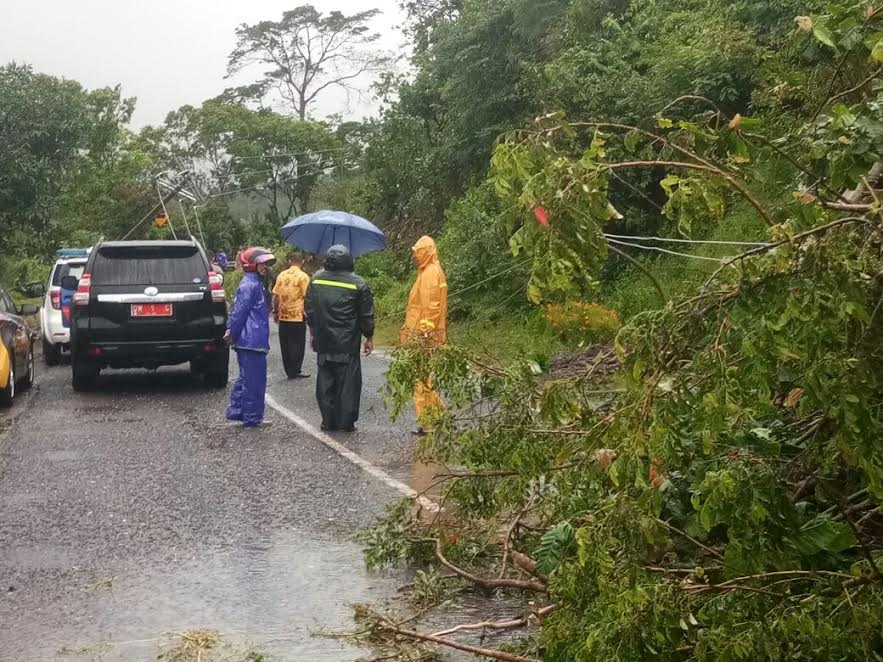Melainkan, ada dua tiang listrik yang ikut tumbang yang memiliki aliran listrik. Pengendara baru melintas setelah PLN memutus aliran listrik.