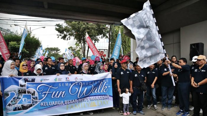 TRIBUN-TIMUR.COM-Ratusan peserta yang terdiri dari staf dan karyawan Manajemen Rumah Sakit Umum Pusat (RSUP) Wahidin Sudirohusodo mengikuti Jalan Santai di pelataran parkir RS tersebut Minggu (25/3/2018). Kegiatan ini adalah rangkaian acara Family Day yang merupakan acara puncak perayaan Hari Ulang Tahun (HUT) ke 25 RS Wahidin Sudirohusodo.