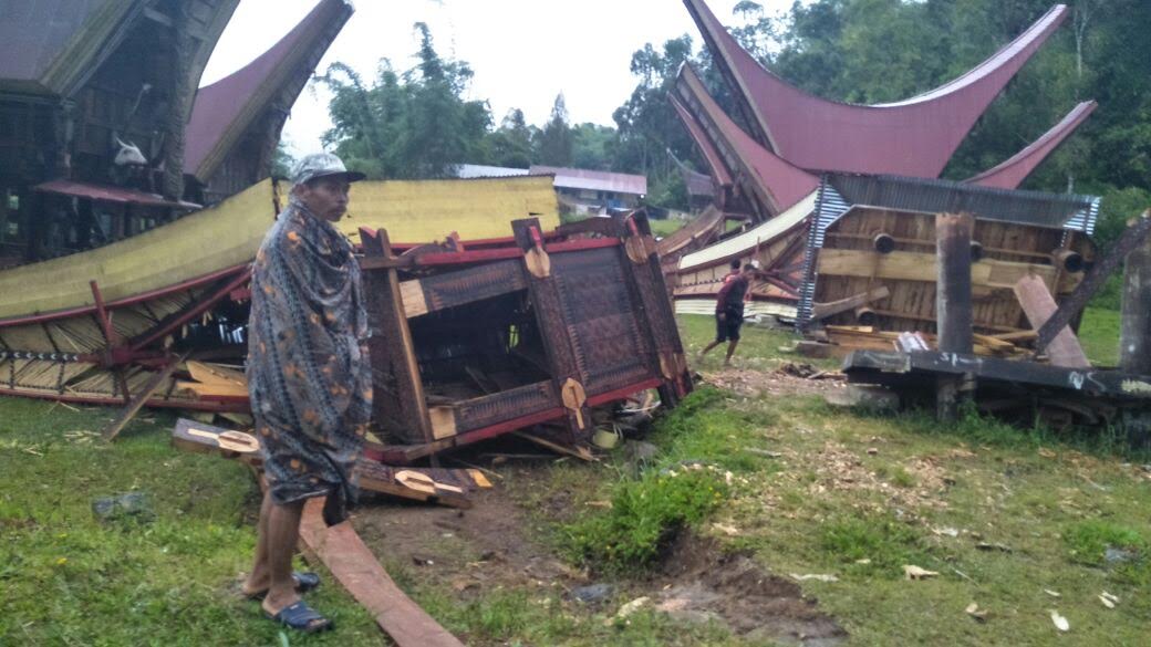 Puting Beliung Robohkan 6 Lumbung Padi di Sesean Toraja Utara