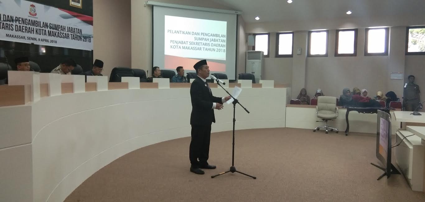 Syamsu Rizal MI melantik dan mengambil sumpah jabatan Penjabat Sekretaris Daerah Kota Makassar tahun 2018 di Balaikota Makassar