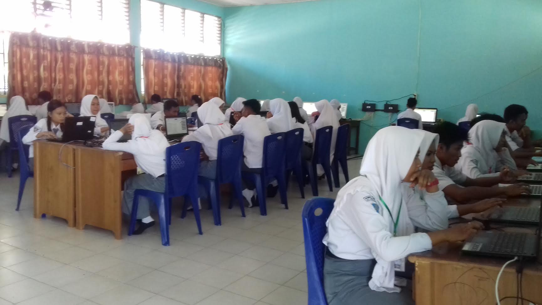 Ujian berlangsung di empat ruangan dengan jumlah sekitar 130 komputer.