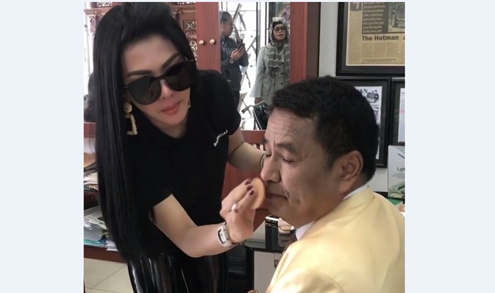 Ia juga terlihat meratakan bedak pada wajah Hotman Paris.