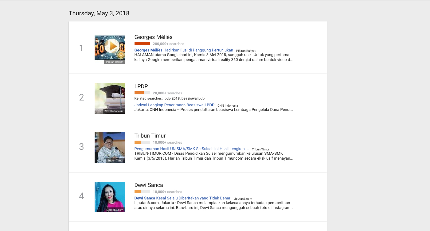 Kata "Tribun Timur" pada Kamis (3/5/2018) hari ini masuk dalam kata kunci paling dicari warganet (trending searches) melalui