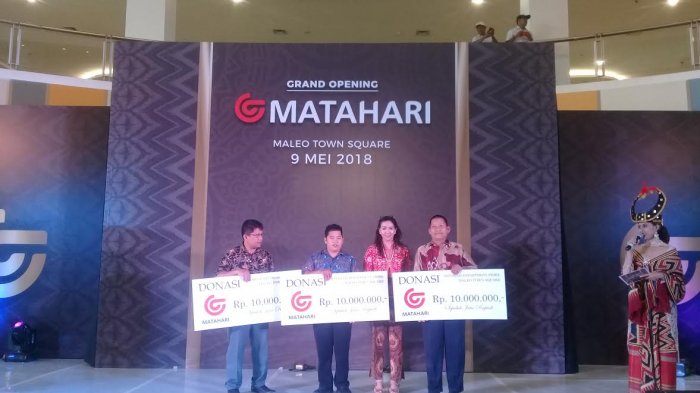 Tiga Panti Asuhan ini masing-masing mendapat bantuan senilai Rp 10 Juta yang diserahkan secara simbolis oleh Direktur PT Matahari Department Store, Miranti Hadisusilo pada masing-masing pengasuh panti disela acara Grand Opening Gerai Matahari di Maleo Town Square Mamuju, Jl Yos Sudarso, Kelurahan Binanga, Kecamatan Mamuju, Sulbar, Rabu (9/5/2018).