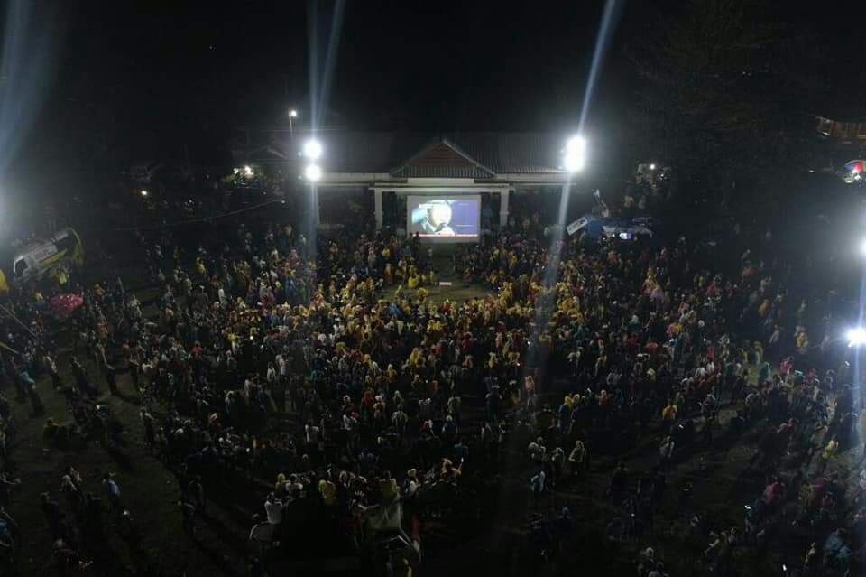 Dini hari ini, ribuan warga nobar Selfi di kampung Wakil Bupati Soppeng Supriansa di Leworeng, Soppeng.