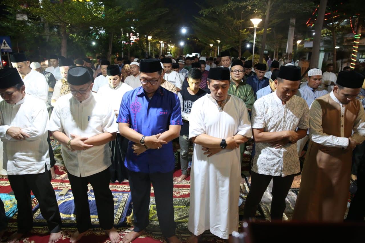 Mengawali Bulan Suci Ramadhan 1439 H, Pemerintah Kota Makassar mengadakan salat tarwih berjamaah di halaman Kantor Balaikota Makassar, Kamis (17/5/2018) malam.