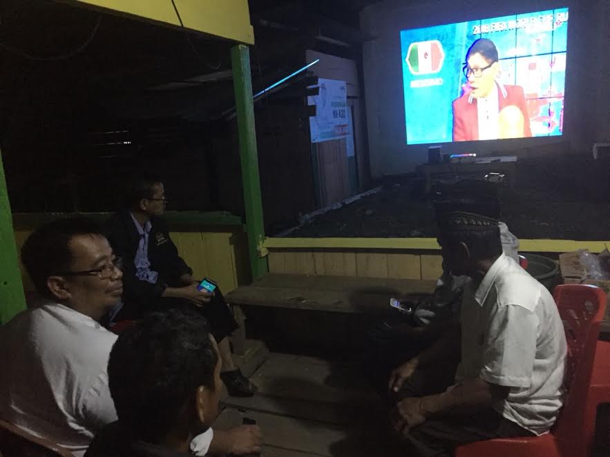 Seperti di lokasi pertama, masyarakat juga menyempatkan waktu untuk berdiskusi dengan Aziz di sela pertandingan Jerman melawan Meksiko. Sambil menyeruput kopi dan melahap ubi goreng, Aziz dan masyarakat berdiskusi santai.