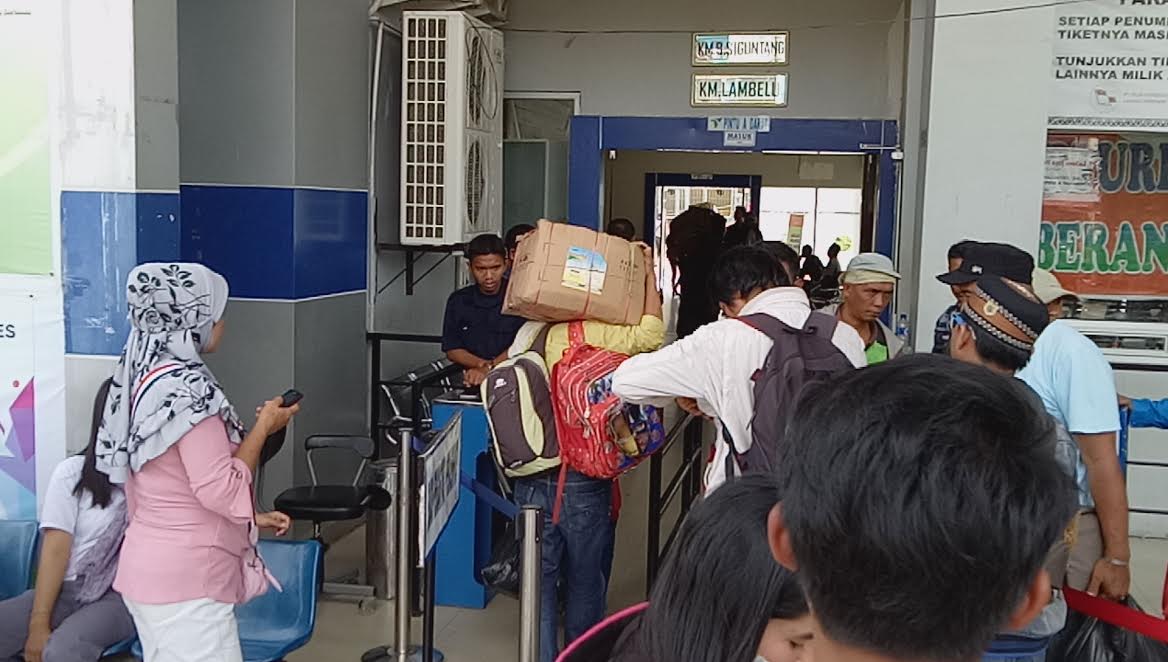 Memasuki arus mudik H+3 lebaran lonjakan penumpang terjadi di Pelabuhan Nusantara, Kota Parepare.