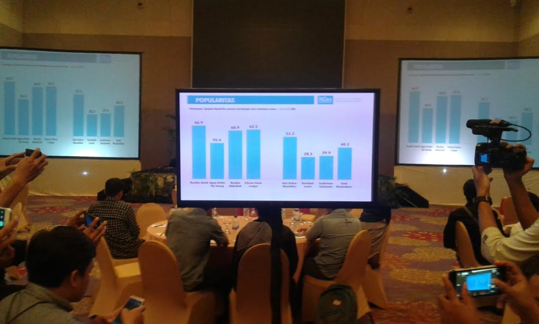 NH-Aziz mengungguli Nurdin Abdullah-Andi Sudirman Sulaiman dengan elektabilitas 26,5 persen, disusul Ichsan Yasin Limpo-Andi Mudzakkar 23,1 persen, serta Agus Arifin Nu’mang-Tanribali Lamo 5,9 persen.