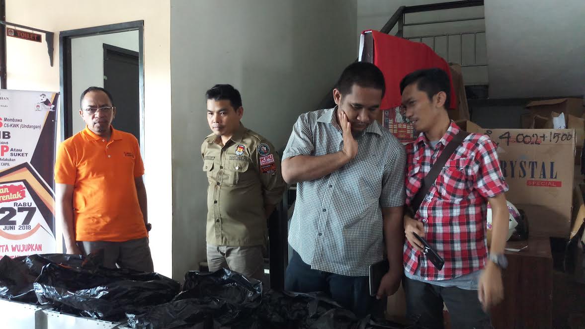 Kedatangan Laode Arumahi untuk memantau pengepakan logistik Pilkada di kantor KPU Wajo.