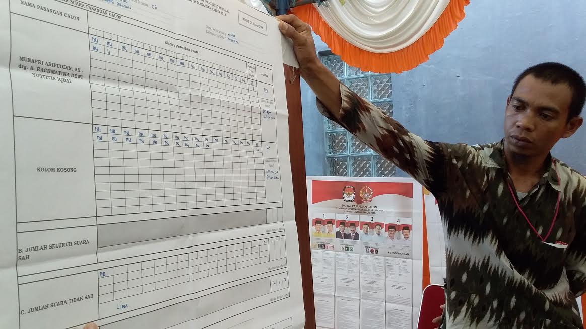 TRIBUN-TIMUR.COM, MAKASSAR - Di TPS 6 Kompleks Mawar Jl Pengayoman Makassar yang merupakan tempat pencoblosan calon gubernur Sulsel, Agus Arifin Nu'mang, Kolom Kosong unggul 125 suara dari total suara 212.