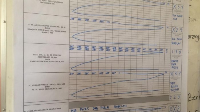 Adapun pasangan calon nomor urut 1 Nurdin Halid dengan Aziz Kahar Mudzakkar (NH-Aziz) mendapatkan 33 suara, Agus Arifin Numang dengan Tanribali Lamo (AAN-TBL) 29 suara.