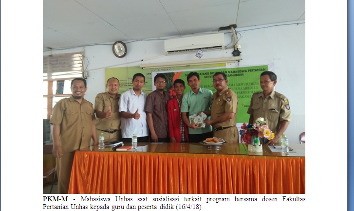 Dengan melihat permasalahan tersebutlah salah satu Tim dari Fakultas Pertanian Unhas yang lolos pada PKM Bidang Pengabdian Masyarakat melakukan kegiatan yang berjudul TAMU (Teenagers Farmer Squad) Sebagai Motivator Muda Usaha Tani Mewujudkan Kebun Hortikultura di SMAN 9 Makassar.