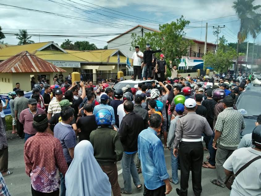 "Kami minta KPU lakukan pemungutan suara ulang karena Pilkada lalu cacat hukum. Jadi bukan soal siapa yang menang dan kalah yang kami protes adalah pelaksanaan Pilakada itu yang bertentangan aturan," kata Kordinator Aksi Muh Taufik.
