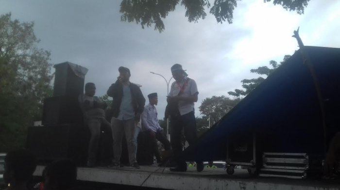 Tak hanya berkumpul dan menunggu hasil rekapitulasi Pilwali Makassar, massa Appi-Cicu juga kembali menyuarakan aspirasinya melalui pengeras suara dari mobil komando yang disiapkan.