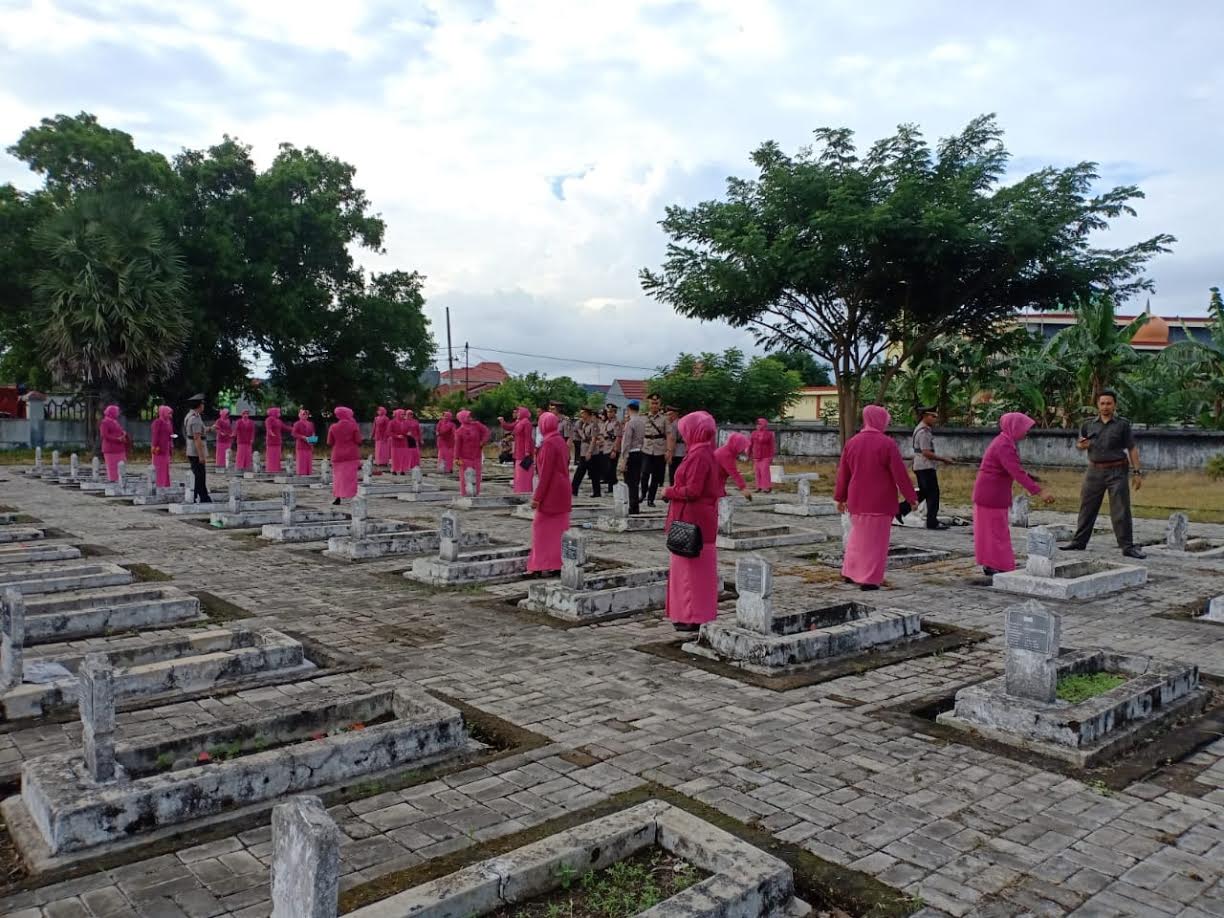 Puluhan personel Polres Jeneponto berziarah ke Taman Makam Pahlawan (TMP) Turatea, Jl Pahlwan, Kecamatan Binamu
