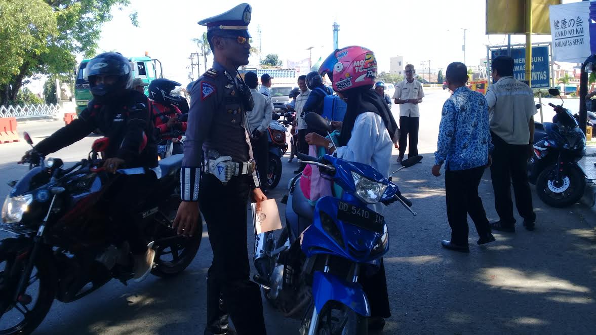 TRIBUNPANGKEP.COM, PANGKAJENE - Warga Pangkep, Risna terjaring razia operasi gabungan Satlantas Polres Pangkep di Jl Poros Sultan Hasanuddin, Kecamatan Pangkajene, Kabupaten Pangkep, Sulawesi Selatan (Sulsel), Selasa (17/7/2018).