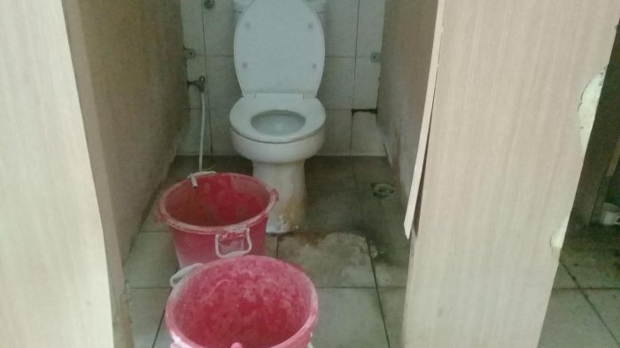 Kondisi toilet tersebut juga sangat memprihatinkan, karena air tidak mengalir.