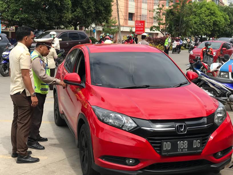 TRIBUN-TIMUR.COM, MAKASSAR- Unit Pelaksana Teknis (UPT) Pendapatan Wilayah Samsat Makassar II Utara menggelar penertiban kendaraan di Jl Boulevard Makassar, Selasa (24/8/2018).