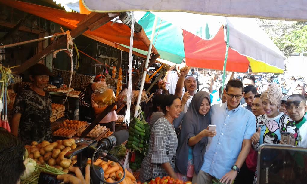 Sandiaga Uno juga menyempatkan diri berbincang dengan pedagang saat blusukan di Pasar Terong