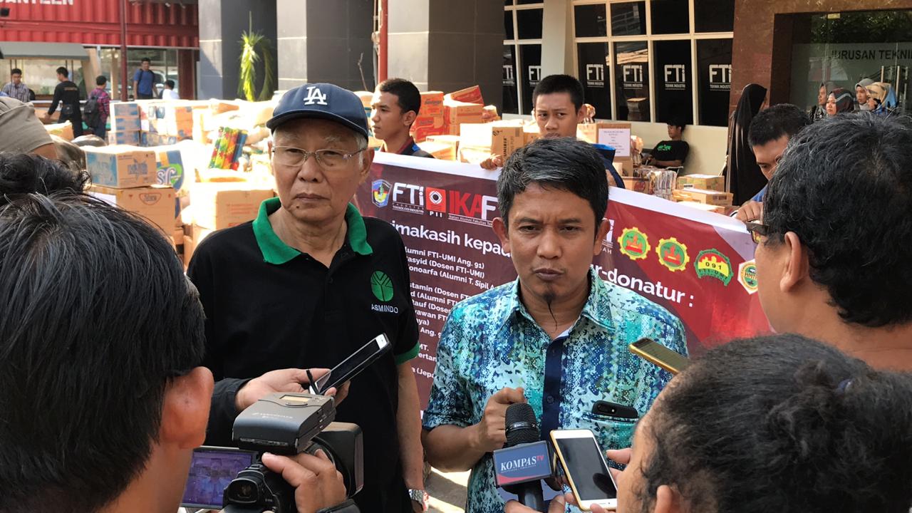 "Kita masih terus kumpulkan. Kita akan tunggu data penyebaran dan kebutuham dari relawan mahasiswa UMI (Makassar) dan Untad (Universitas Tadulako) Palu, untuk menyelurkan," kata Dewan Pembina DPP Asmindo, Julius Hoesan, disela-sela penyaluran bantuan dan paket trauma healing ke pengungsi Palu-Donggala-Sigi di Kampus FTI UMI di Jl Urip Sumihardjo, Makassar, Sabtu (6/10/2018) sore.