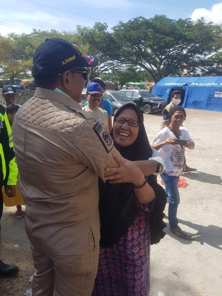 Fahsar disambut hangat pengungsi yang berada di halaman kantor Bupati Donggala.