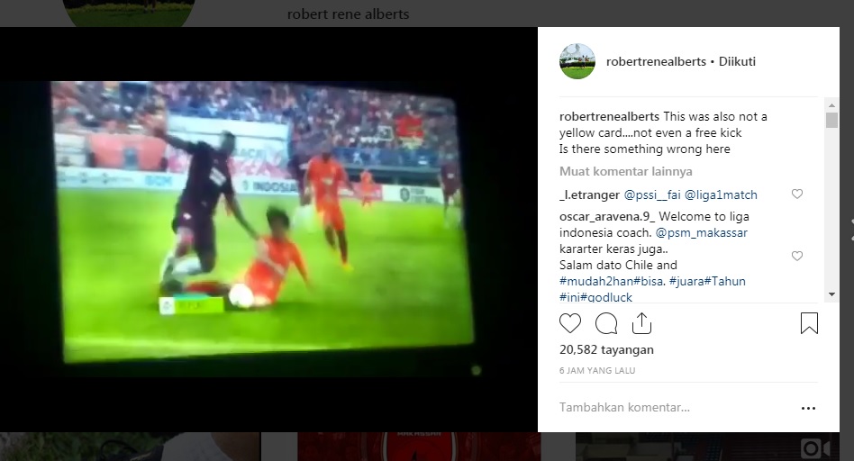 Untuk hal itu, Pelatih PSM Robert Rene Alberts hanya mengutarakan pertanyaan di akun instagramnya.