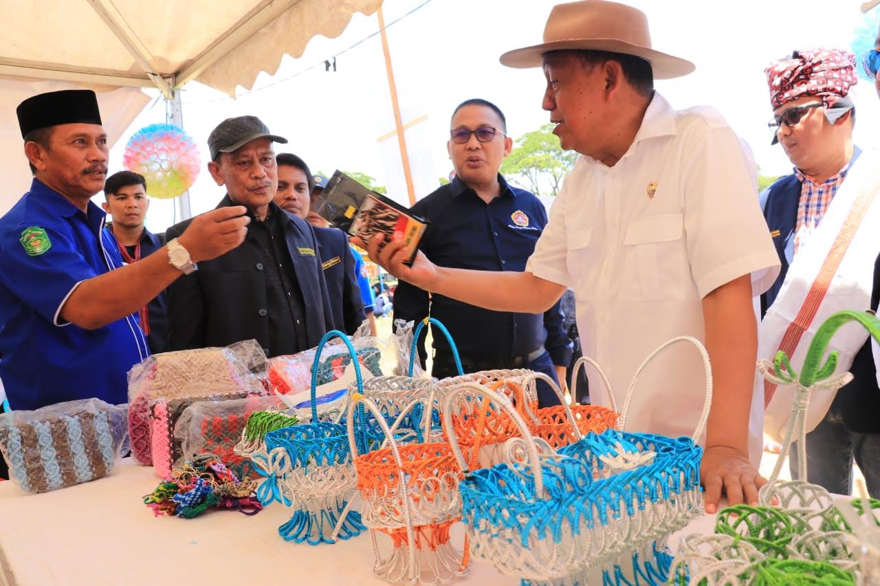 Kepala Dinas Sosial Luwu Timur, Sukarti Saleng juga turut membantu menjual Ikan Pangkilang di stan Karang Taruna Luwu Timur kepada pengunjung.