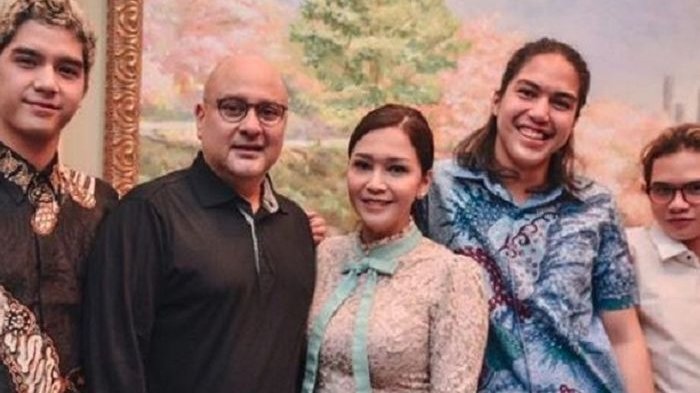 Maia Estianty tampak membagikan fotonya dengan Irwan Mussry dan ketiga anak dari pernikahan terdahulunya dengan Ahmad Dhani, Al, El dan Dul.