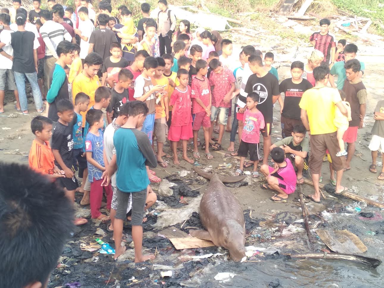 Ratusan warga pun langsung berbondong-bondong ke lokasi menyaksikan ikan duyung.