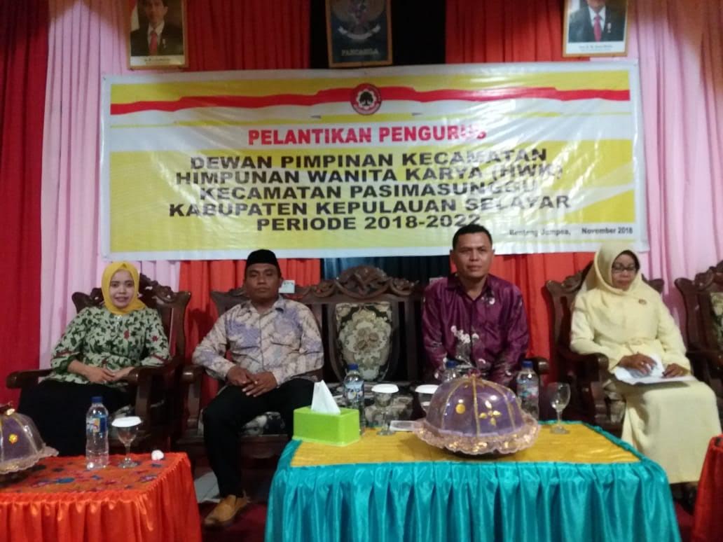 Ketua DPD Himpunan Wanita Karya (HWK) Selayar Hj Sitti Zaenab Sudiro melantik Ketua dan pengurus HWK Kecamatan Pasimasunggu periode 2018-2022.