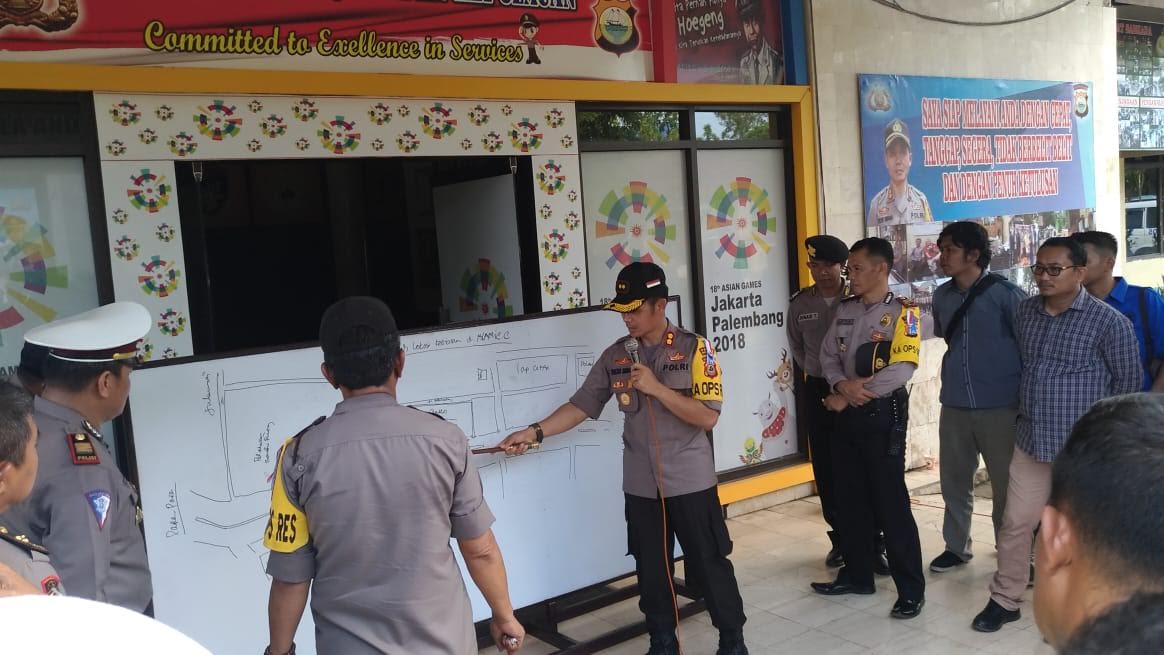 Usai pembahasan pengamanan, Kapolres bersama personil menuju lokasi tempat pelaksanaan kampanye Sandiaga Uno untuk melakukan gladi resik.