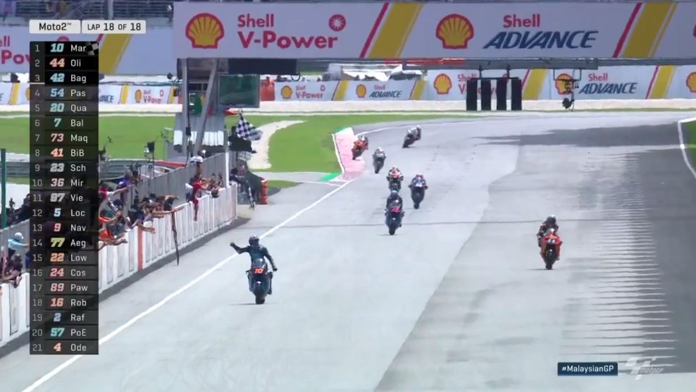 Sejak awal balapan Luca Marini melesat memimpin sejak lap pertama, disusul Bagnaia di posisi kedua. Namun, Oliveira yang berada di posisi ketiga berhasil melewati Bagnaia dan terus berusaha mengejar Luca Marini. Namun, upaya Oliviera tak berhasil, Luca Marinin tak terkejar hingga putaran terakhir garis finis MotoGP Sepang Malayasia.